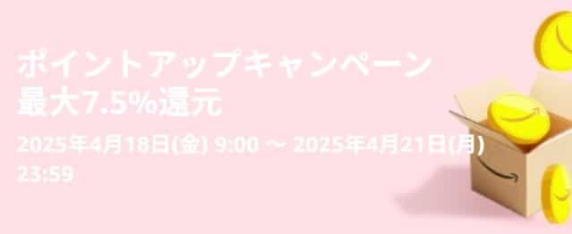 - ポイントアップキャンペーン利用時の還元率が2%アップ。