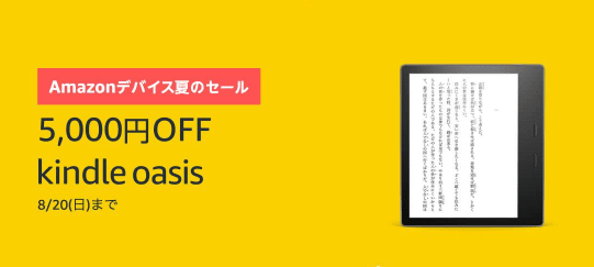 | Kindle Oasis | 29,980円→19,980円(33%OFF) |